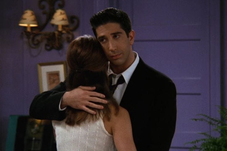 Looking at Ross’ cognitive history, his divorce with Carol after a seven-year marriage left a deep scar, especially because Carol found out that she was pregnant with Ross’ son in the midst of that divorce. Without this turn of event, Ross could have had everything that he was looking for in a relationship: a committed marriage with a woman he loves and children of their own.